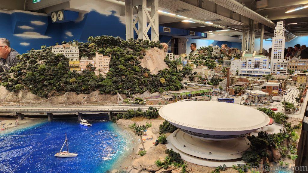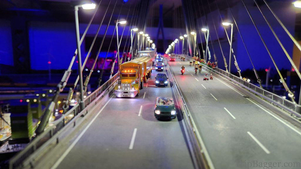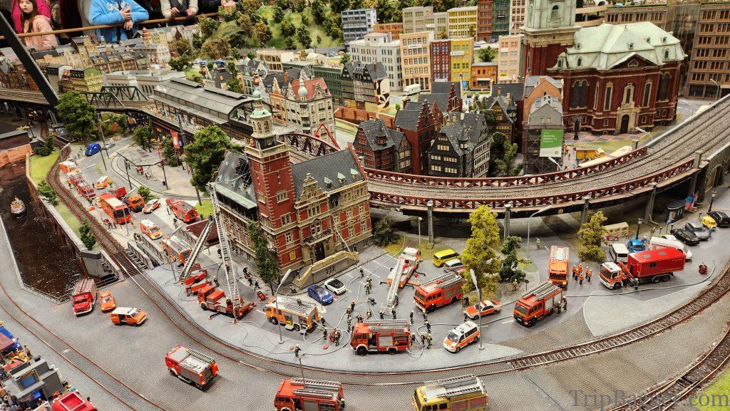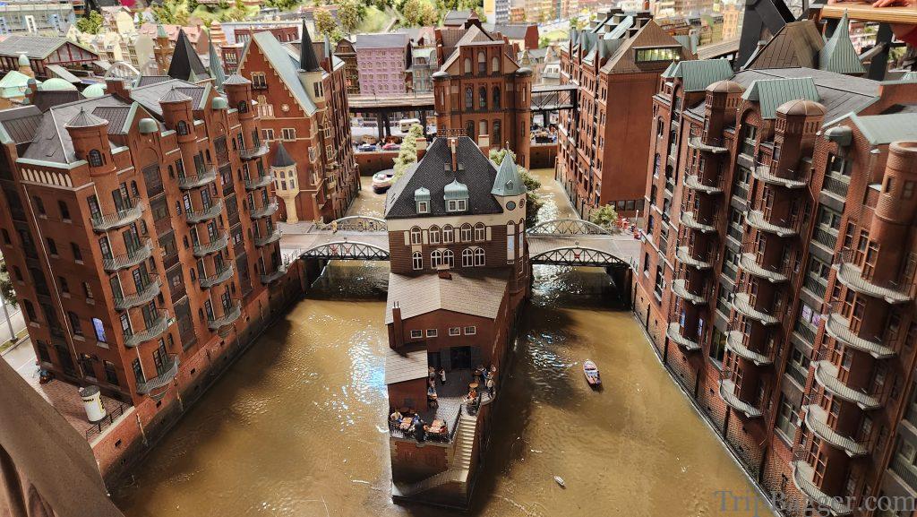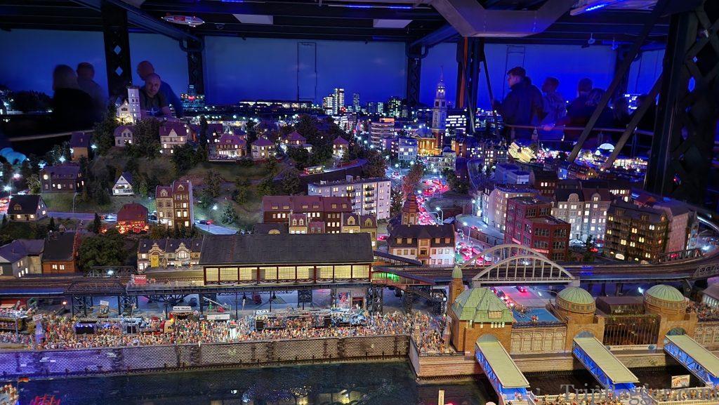 How do I explain the worlds smallest state? Imagine, the most extensive model railroad set you have seen in your entire life. Of course, what model world would be complete without the building you are currently inside. This is exactly what Miniatur Wunderland looks like in real life, but tiny. Make sense, right?Located in Hamburg Germany, modeled here Miniatur Wunderland consists of 12 themed worlds. Picture of the same location in Hamburg I took while walking around as the mini-version. Just to give you something to compare real world vs Miniatur Wunderland. Just the miniature Hamburg train station alone, has 2.6km of track, 550 switches and 200 trains. The entire facility has a staggering 16km of model train track and 1231 trains that pull 12,000 rail cars. The longest train in the collection is 14m long. It isn’t just trains. There are 11,800 cars and trucks too. Impossible to tell from the pictures, but the cars drive down the road as well, they are not stationary. When they reach an intersection, they even signal before making a turn. Each car has it’s own microprocessor on-board that is programmed to follow the rules of the road. The little cars have driven over 1,500,000km. The attention to detail is something only the Germans could do. The miniatur Wunderland has cost 45 million euros to build, so far and has over 400 employees. This building model would periodically start on fire, smoke would come out the roof but the fire fighters would put it out. It is fun to spot the famous landmarks, Vegas Baby! Miniatur Wonderland is also home to over half a million LED’s. Which is pretty handy because every 15 minutes the mini sun goes down and the lights turn on for the night. There are over 280,000 mini people at Miniatur Wunderland, some of which appear to be enjoying a concert. But it isn’t just mini people at the Wunderland. Roughly 1.5 million real people visit per year. With over 25 million visitors total, so far. Plus 2 Shawns. This is downtown Hamburg complete with the elevator tunnel (more on that soon). You could spend days, trying to spot all the hidden details. Like the man who has fallen into the snow on the roof.